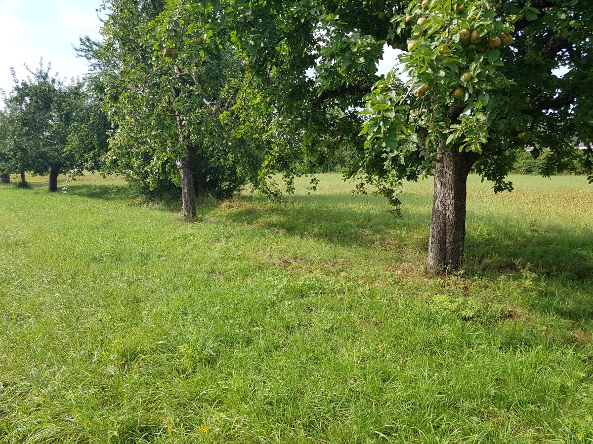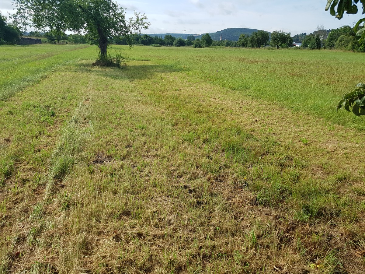 Die Tauberwiesenbewässerung rechts der Tauber wird kaum wahrgenommen. Vielfach ist sie auch schon verschwunden. An vielen Stellen unterbrochen, verändert, überbaut. Nach der Nordbrücke ist das ehemaligen Grabensystem noch sehr leicht an seinen linearen Strukturen erkennbar. Bäume, Verbuschung, Brennnessel begleiten die schmalen Gräben. Man muß schon an die Gräben heran gehen, um sie tatsächlich zu sehen. Man muss auch an den Fahrwegen über die Wiesen entlang laufen, um deren Vielfalt zu entdecken, und damit auch zu verstehen. Die Verungradigung der Tauber hat zum Verschwinden des Grabens am Tauberdamm beigetragen. Ebenso die Biotopisierung, die wahllos Löcher in den Wiesengrund stanzt. Hätte man das Grabensystem erhalten, so hätte man viel sinnvoller Feuchtbiotope haben können. Wenn auch mehr geradlinig als die heutigen Feuchtbiotope im Nierendesign.